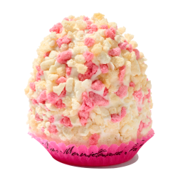 MiniBaiser, Spekulatius-Schlagsahne, umhüllt mit Spänen aus weißer Schokolade.