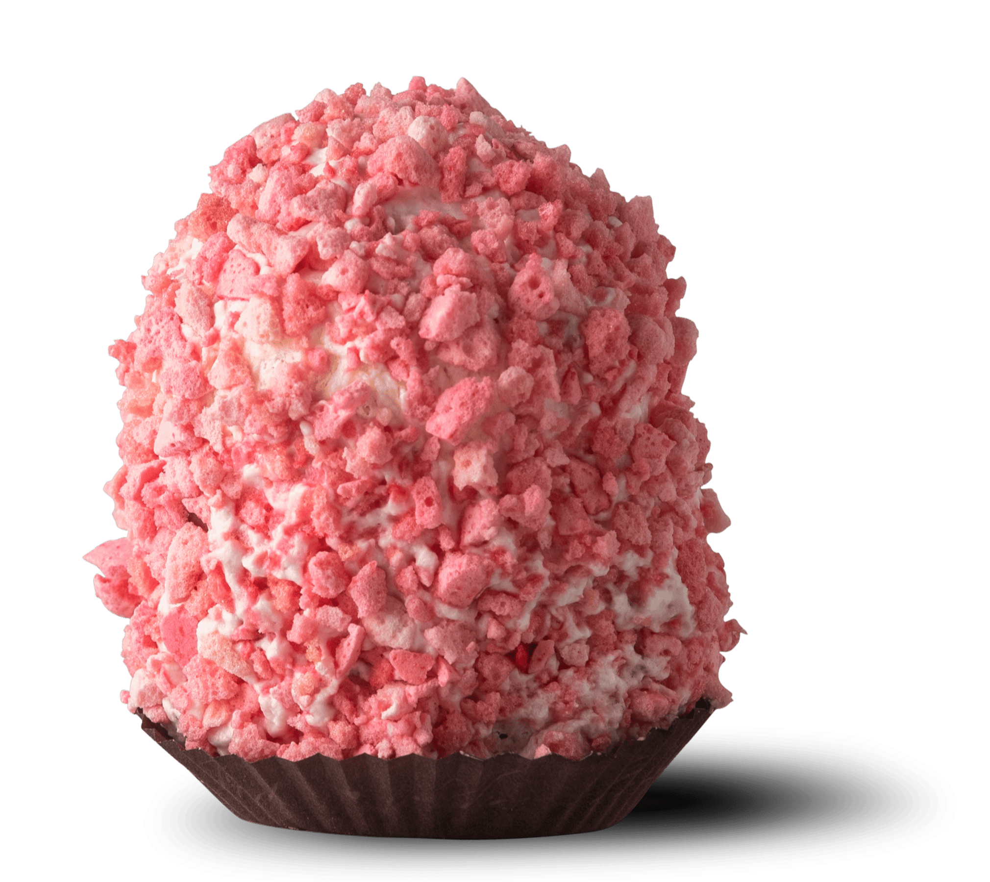 Sněhová pusinka, šlehačka s příchutí třešně, obalená v krystalizovaných kouscích pusinek.