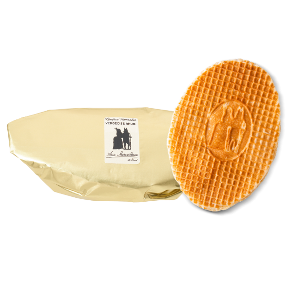 Les gaufres vergeoise sont composées d’un fourrage à base de beurre frais parfumée au rhum.